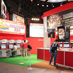 BANDAI NAMCO 今年展出的作品依然是以動漫系作品為大宗,舊 NAMCO 的風味好像愈來愈淡薄了啊。現場主要展出的可試玩作品有《God Eater Resurrection》、《Jo Jo 的奇妙冒險 天國之眼》、《火影忍者 疾風傳 終極風暴4》、《跨界計畫2》、《鋼彈 Extreme VS-Force》等遊戲。這邊展場布置上最引人注目的就是號稱 1:1 大小的夏亞專用薩克隊長機頭像了,紅色的單眼還會左右來回擺動,十分有氣勢。另外這裡還有兩個拍照區,採用前後兩層投影的方式,讓拍攝者有融入遊戲世界中的感覺。另外這次 BANDAI NAMCO 在展場還搞了一個「充電娘」的噱頭,由美女揹著大型行動電源免費幫路過者充電,代價當然就是在充電的這段期間內充電娘會拿著平板向充電者介紹該公司所發行的行動遊戲並要求下載啦。