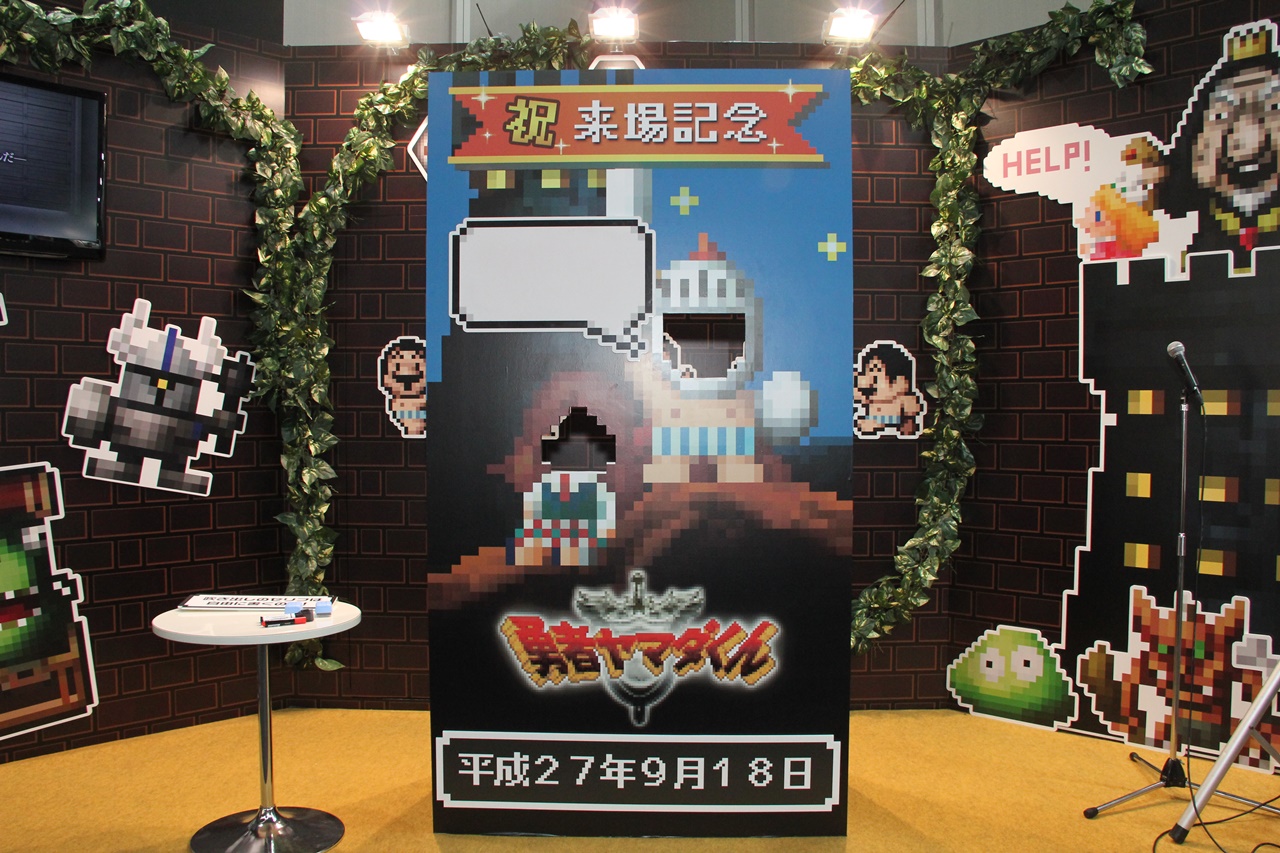 SNS 系遊戲另一大廠商 DMM 的展出方式就比較正統些,一部分區塊展出旗下工作室自製作品,一部份展出該平台上的大量遊戲。其中展示規模最大的遊戲當屬《艦隊收藏》,除了有封閉劇院撥放最新 PV 之外,還展示了大量人偶模型。個人先前於BitSummit 試玩之後十分喜歡的作品《勇者山田君》(勇者ヤマダくん) 也在這邊佔了一塊不小的地,並有著不錯的試玩人氣。