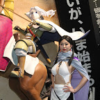 另一個 SNS 時代的大廠 DeNA 這次展出規模不大,只有一個白色外牆的封閉劇院,要不是前面不時有 Show Girl 登場,很容易讓人忽視 DeNA 展場的存在。原先我以為劇院的內容只是單純的播放遊戲影片,不過實際上是一個特殊的環繞劇場,將入場時所取得的卡片置於場內的圓桌上,卡片上的角色將會出現在劇場螢幕上進行各種演出。擔當這劇場演出設計的是在互動科技領域頗具實績的 team Lab,但因為純就外觀來看,其實真的不大知道劇院裡賣的是什麼藥,大多數人不會留步,為遊戲帶來的曝光效果實在很難說有效啊。